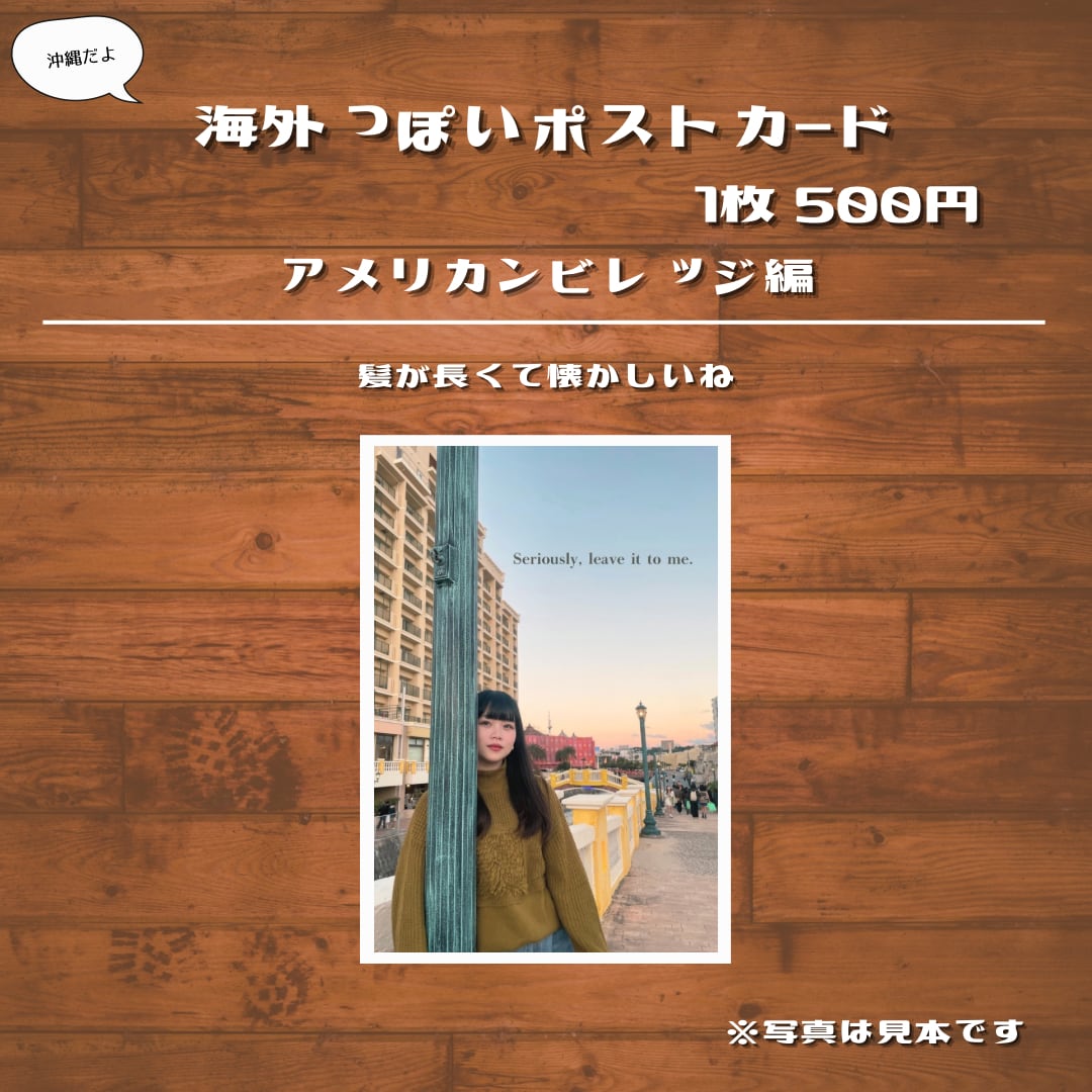 かっこいいポストカードを作りたかったので、まるで海外旅行に行った人かの様な写真をポストカードにしました。